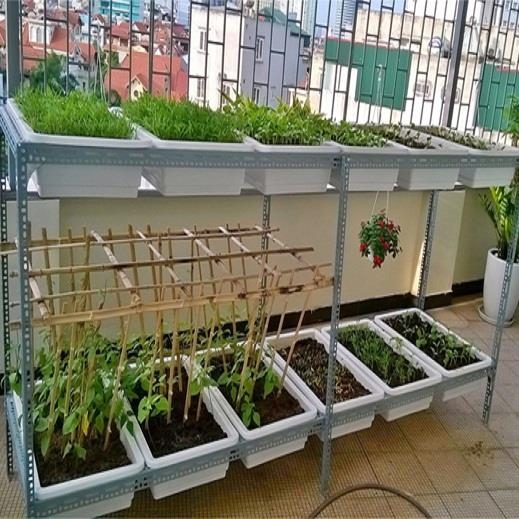 - Trồng đủ các loại: rau ăn là, cây ăn quả, các loại củ... bạn đều có thể trồng trên kệ trồng rau sạch tại nhà. Rất nhiều gia đình đã biến sân thượng trồng rau, củ quả thành môi trường sinh thái đẹp và đủ các loại rau củ quả.