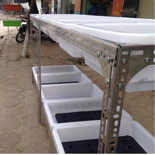 - Số tầng của kệ trồng rau: phổ biến nhất nhất là 2 tầng, bên cạnh đó có cả 1 tầng và 3 tầng. Cá biệt có khách hàng còn làm luôn kệ 4 tầng và bắc ghế để chăm sóc.
