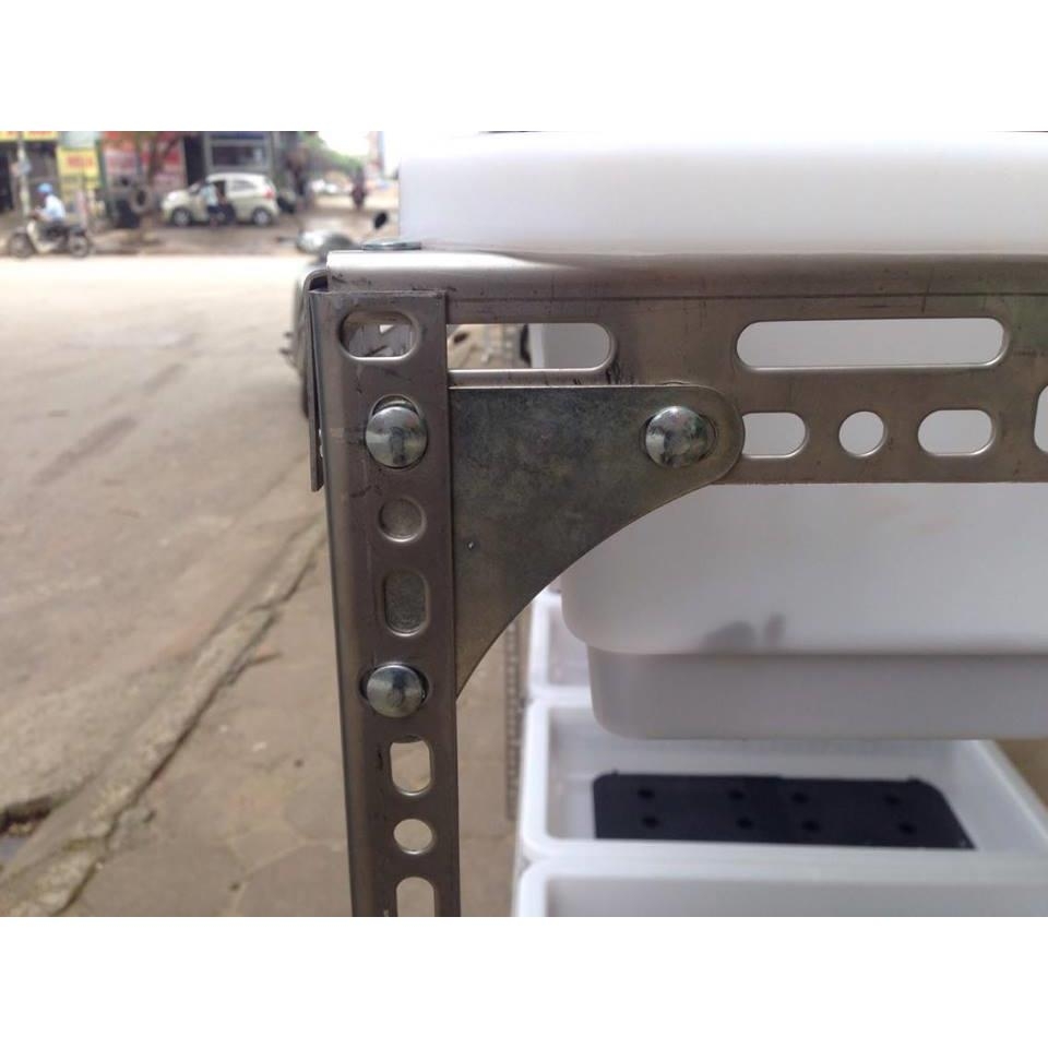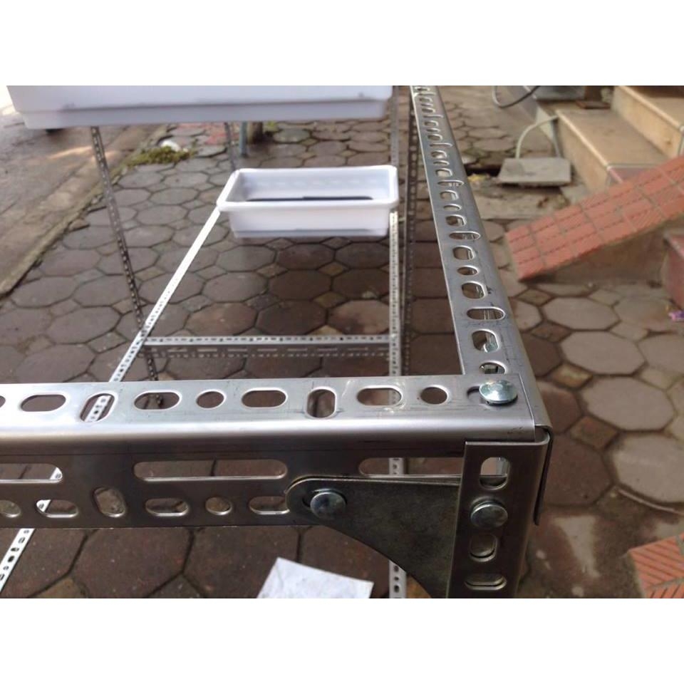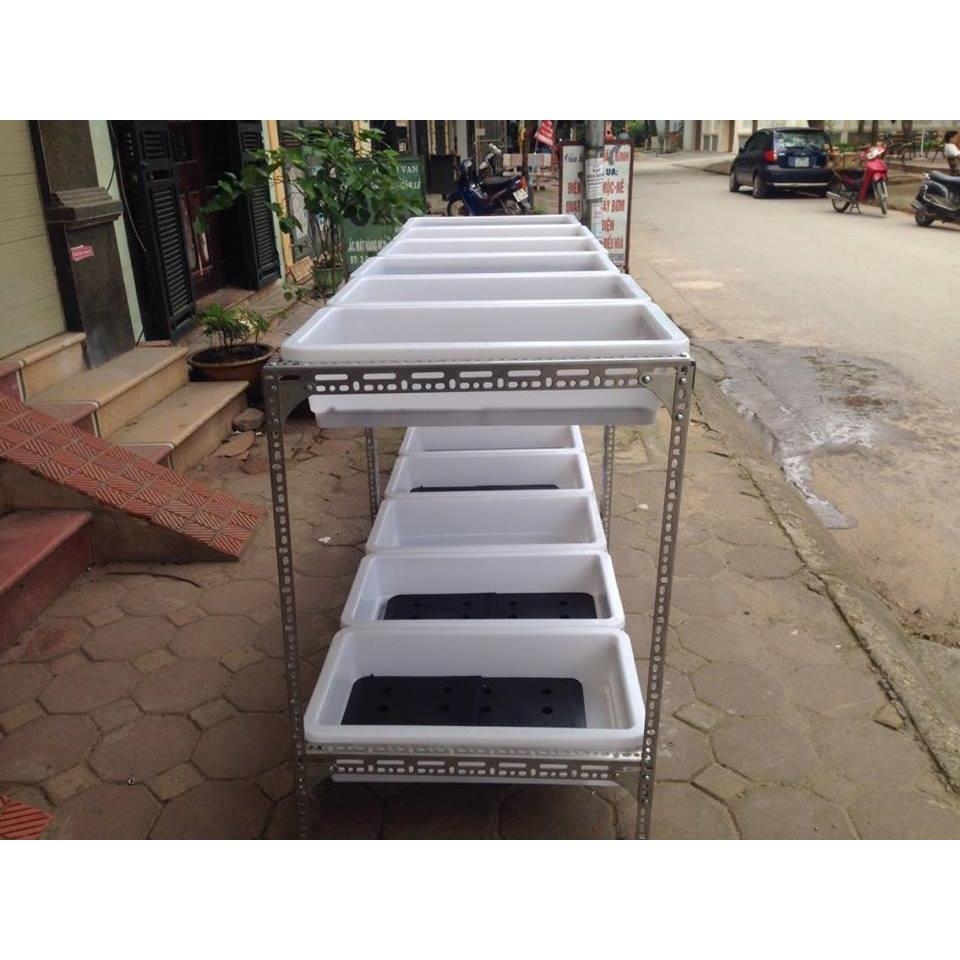Là một loại kệ được lắp từ sắt v lỗ, hoặc hàn bằng sắt hộp, hoặc hàn bằng inox, giúp tạo ra 1 tầng, 2 tầng, 3 tầng,... hoặc nhiều hơn chưa các khay trồng rau. Giúp tối ưu diện tích, trồng được nhiều rau hơn, không gian gọn gàng sạch sẽ đẹp mắt, tạo thêm hứng thú cho người trồng rau sạch tại nhà.